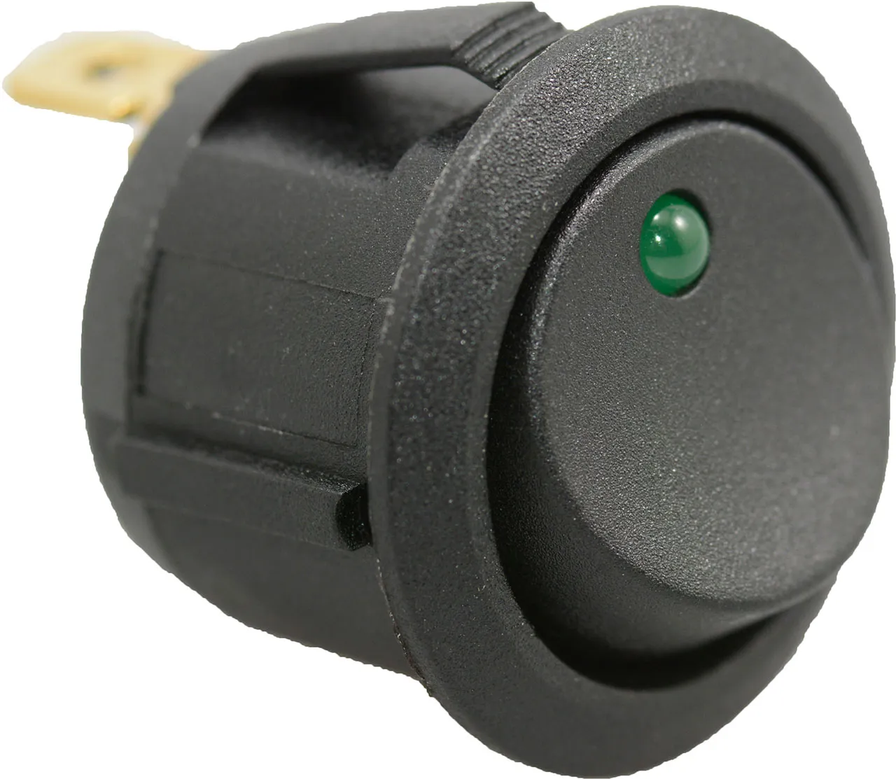 Rocker Switch SPST ON-OFF 20A 14VDC Green LED Dot Snap-In Panel Mount 0.187 Quick Connect