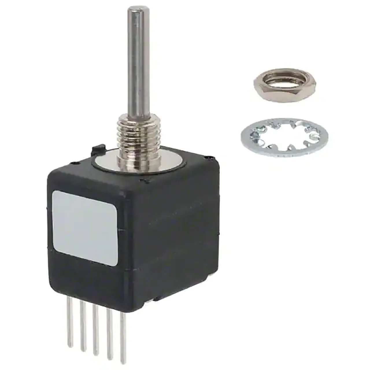 The self-contained rotary optical encoder produces a 2-bit quadrature signal which is suitable for digital systems where both magnitude and direction of adjustment must be provided. This encoder is ideal for use as a digital panel control or as a position sensing device in applications where long life, reliability, high resolution and precise linearity are critical.The encoder converts rotary input into electrical signals which can be used by microprocessors without ADC. The output signals are square wave digital pulses which do not require debounce circuitry.