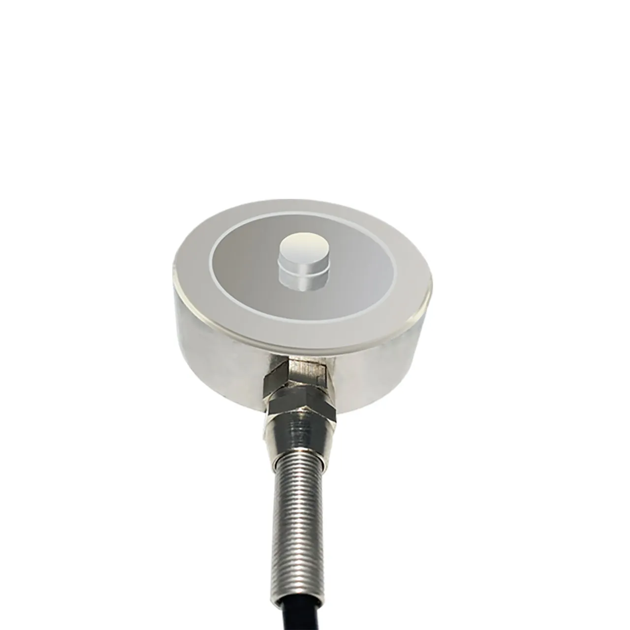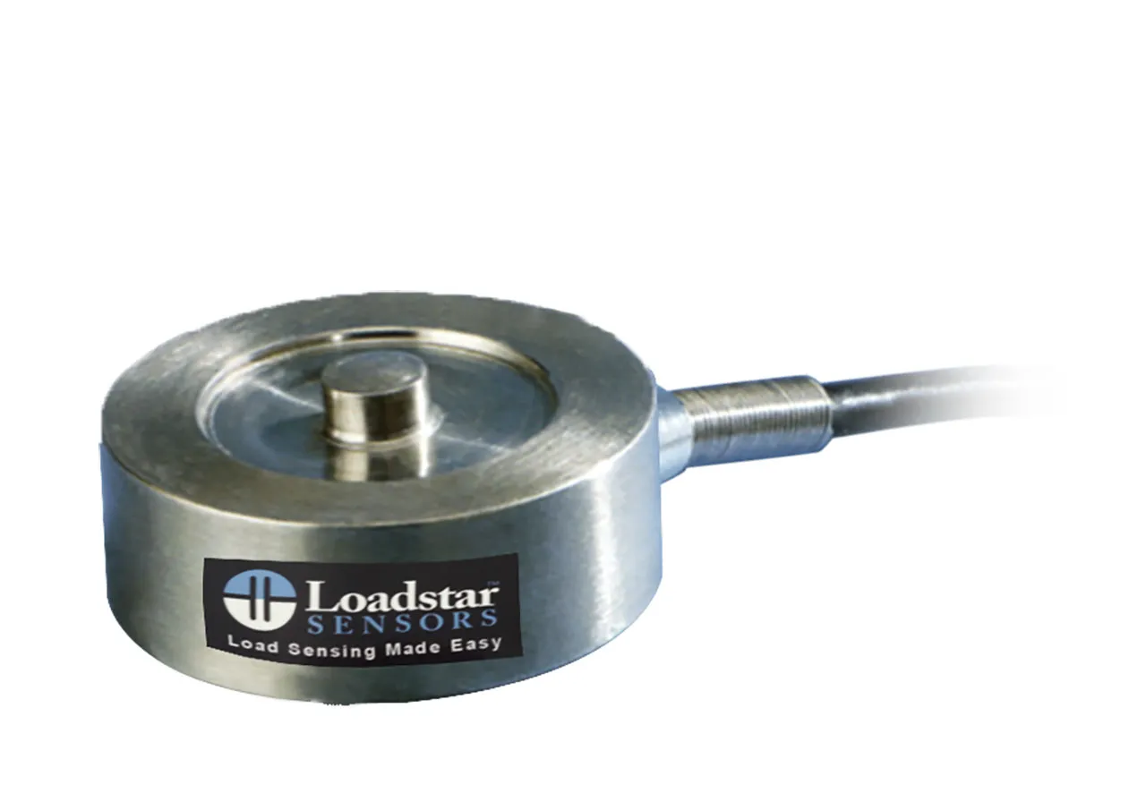 - Button load cell that is excellent for measuring compression loads or push forces with very high accuracy and stability with time and temperature