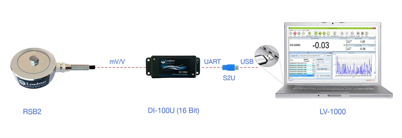 RSB2 Button Load Cell PC Kit, 250 KG Capacity, DI-100U USB Interface, LoadVUE Pro Software, Calibrated in Compression
