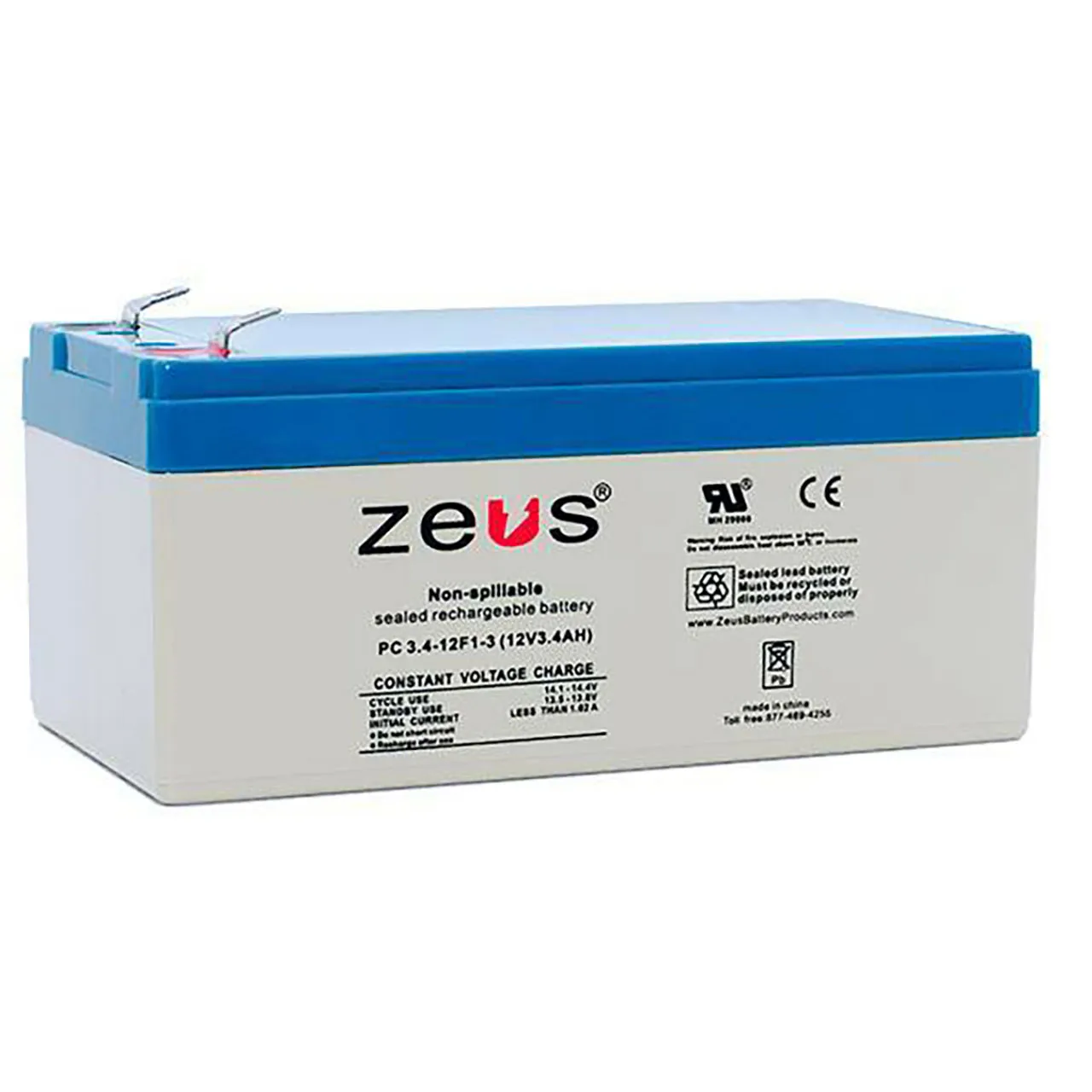 Sealed Lead Acid Battery (SLA) 12V 3.4Ah F1 Terminals Rechargeable General Purpose 134x67x61x66mm.