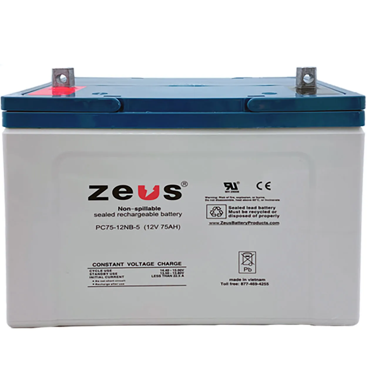 Sealed Lead Acid Battery (SLA) 12V 75Ah NB Terminals Rechargeable General Purpose 230x137x210x228mm.