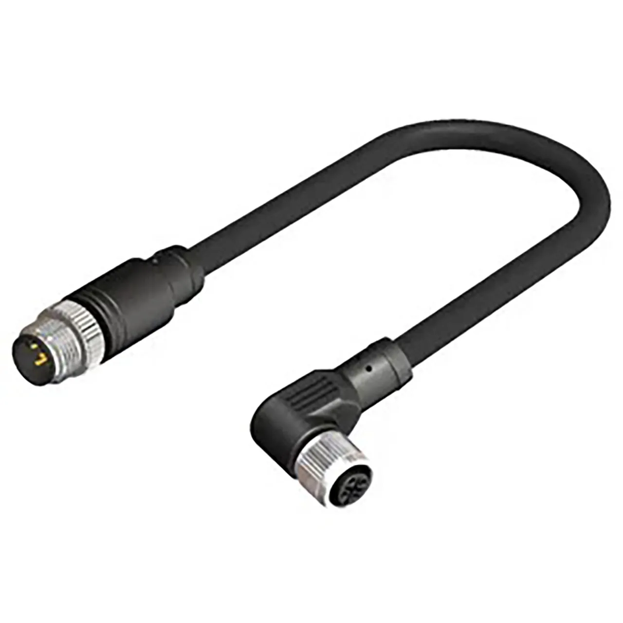Sensor Cable M12/5 Pin/Socket to M12/5 Pin/Plug A-Coded 90°/ Straight 4x22AWG PUR Cable Black 5m