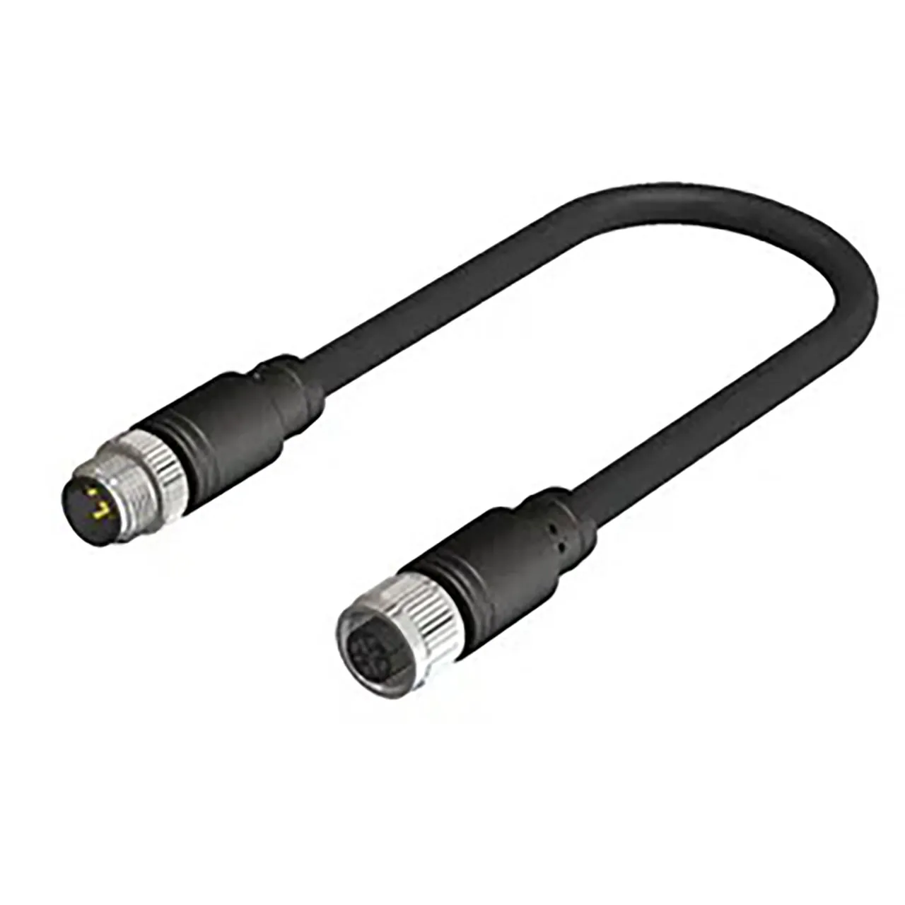 Sensor Cable M12/5 Pin/Socket to M12/5 Pin/Plug A-Coded Straight 4x22AWG PUR Cable Black 2m