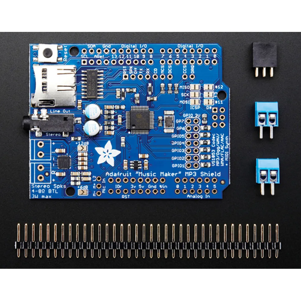 SHIELD,MP3 w/ 3W STEREO AMP,4/ 8ohm,VS1053,RECORD FUNCT.