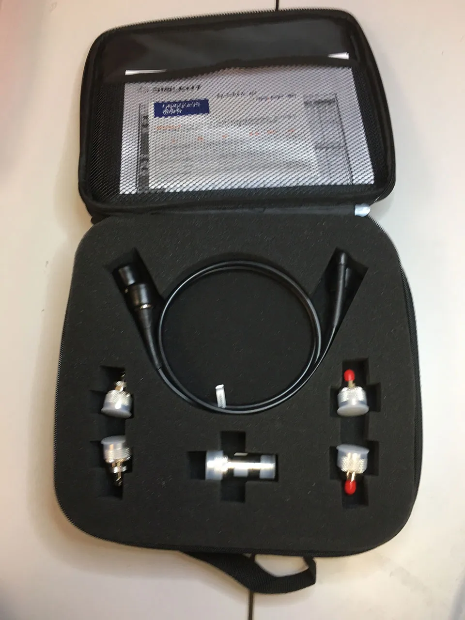 Accessory kit includes coaxial cables, adapters, attenuator and a zipped carry case.