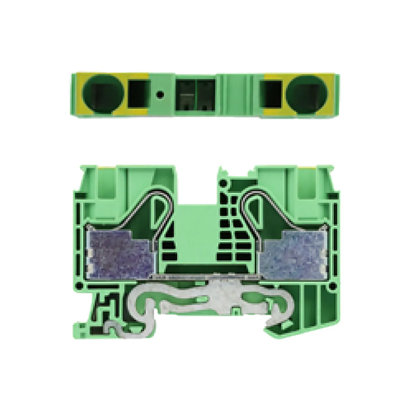 Single Layer DIN Rail Terminal Block 2C/Ground 16mm² Max Wire Push-In Green and Yellow