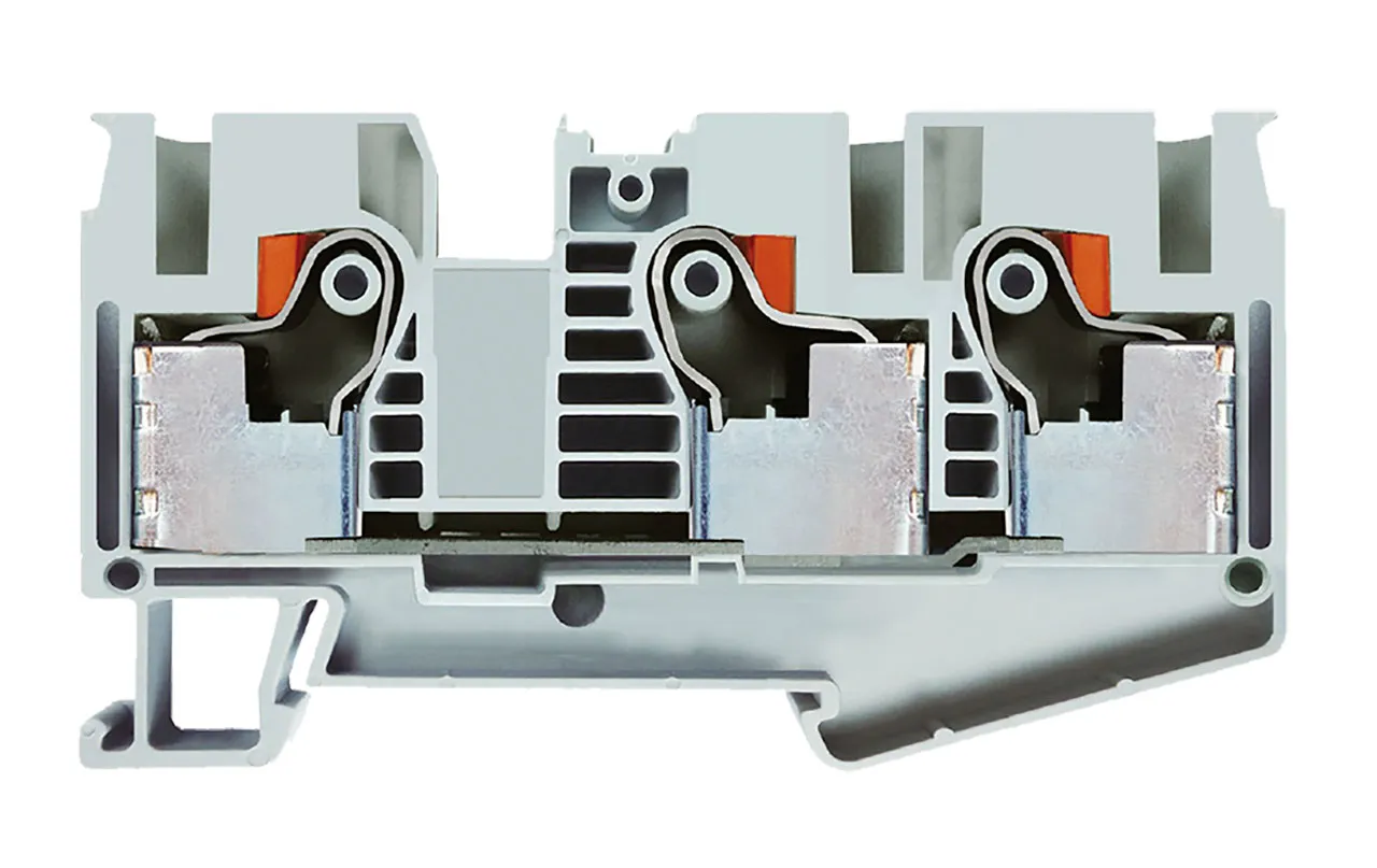 Single Layer DIN Rail Terminal Block 3C 10mm² Max Wire Push-In Gray