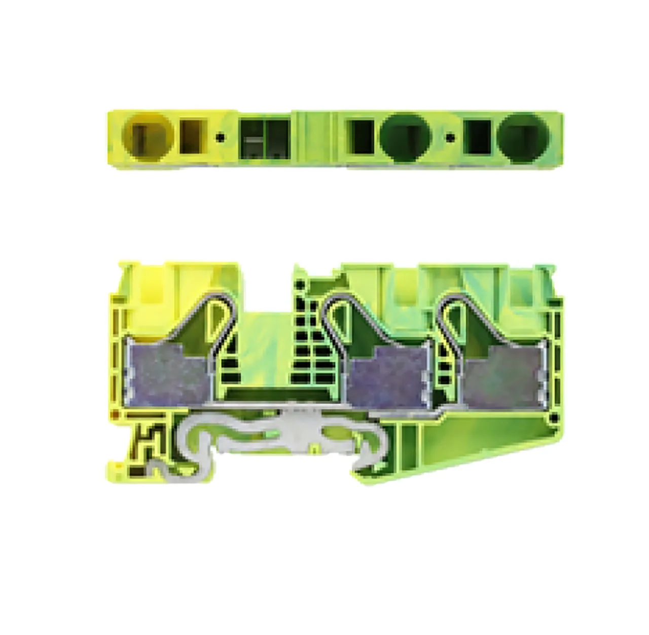 Single Layer DIN Rail Terminal Block 3C/Ground 16mm² Max Wire Push-In Green and Yellow