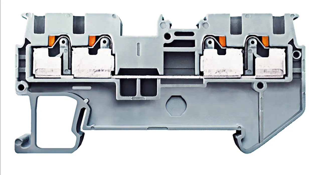 Single Layer DIN Rail Terminal Block 4C 1.5mm² Max Wire Push-In Green
