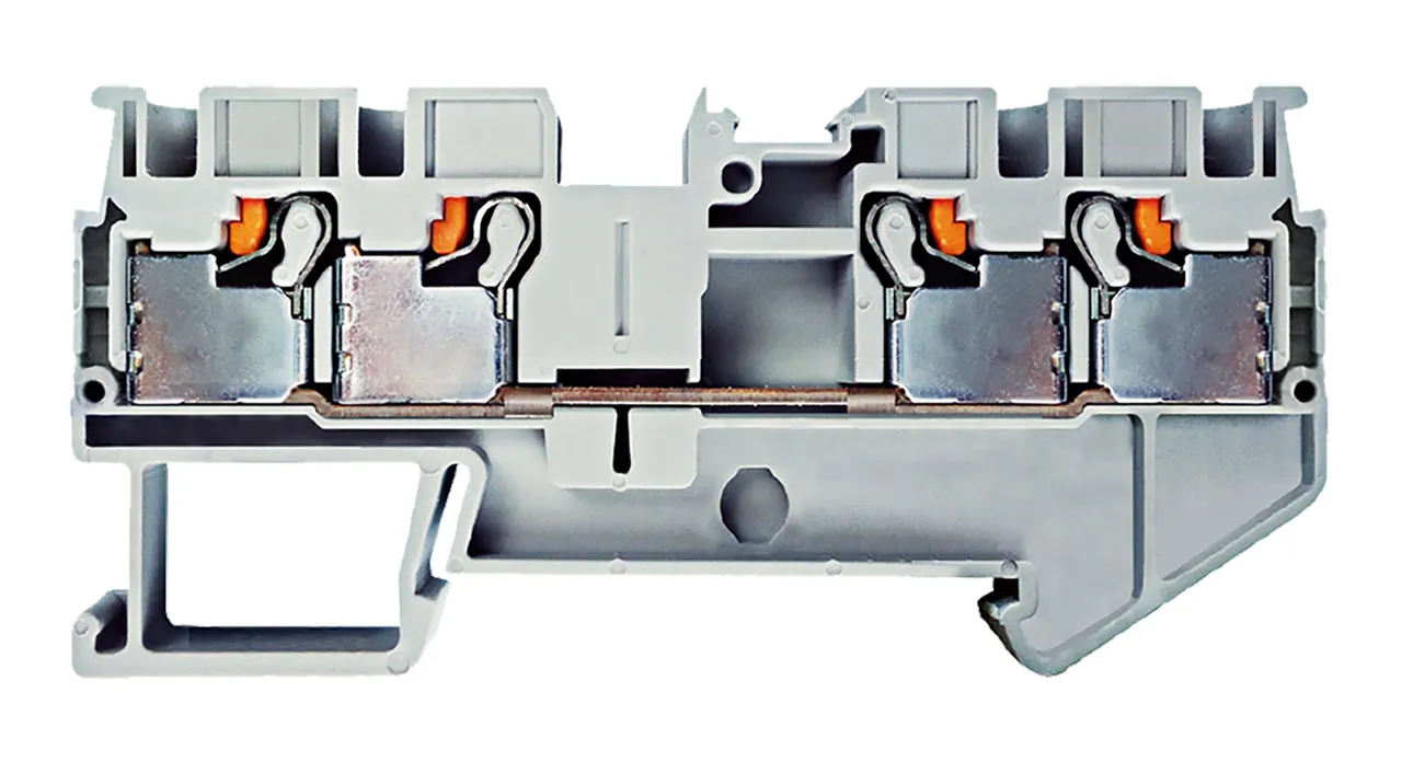 Single Layer DIN Rail Terminal Block 4C 4mm² Max Wire Push-In Green