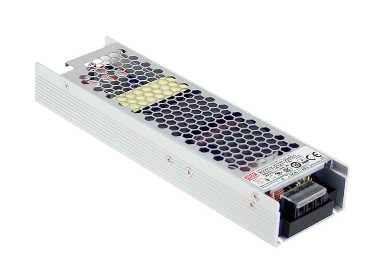 UHP-350 series is a 350W single-output slim type power supply with 31mm of low profile design. Adopting the fill range 90-264VAC input, the entire series provides an output voltage line of 3.3V, 4.2V, 5V, 12V, 15V, 24V, 36V, 48V, and 55V. In addition to the high efficiency up to 94%, the whole series operates from -30C to +70C under free air convection without a fan. UHP-350 has the complete protection functions and 5G anti-vibration capability; It is compliant with the international safety regulations such as TUV BS EN/EN62368-1, BS EN/EN60335-1, UL 62368-1 and GB 4943.1. UHP-350 series serves as a high performance power supply solution for various industrial applications.