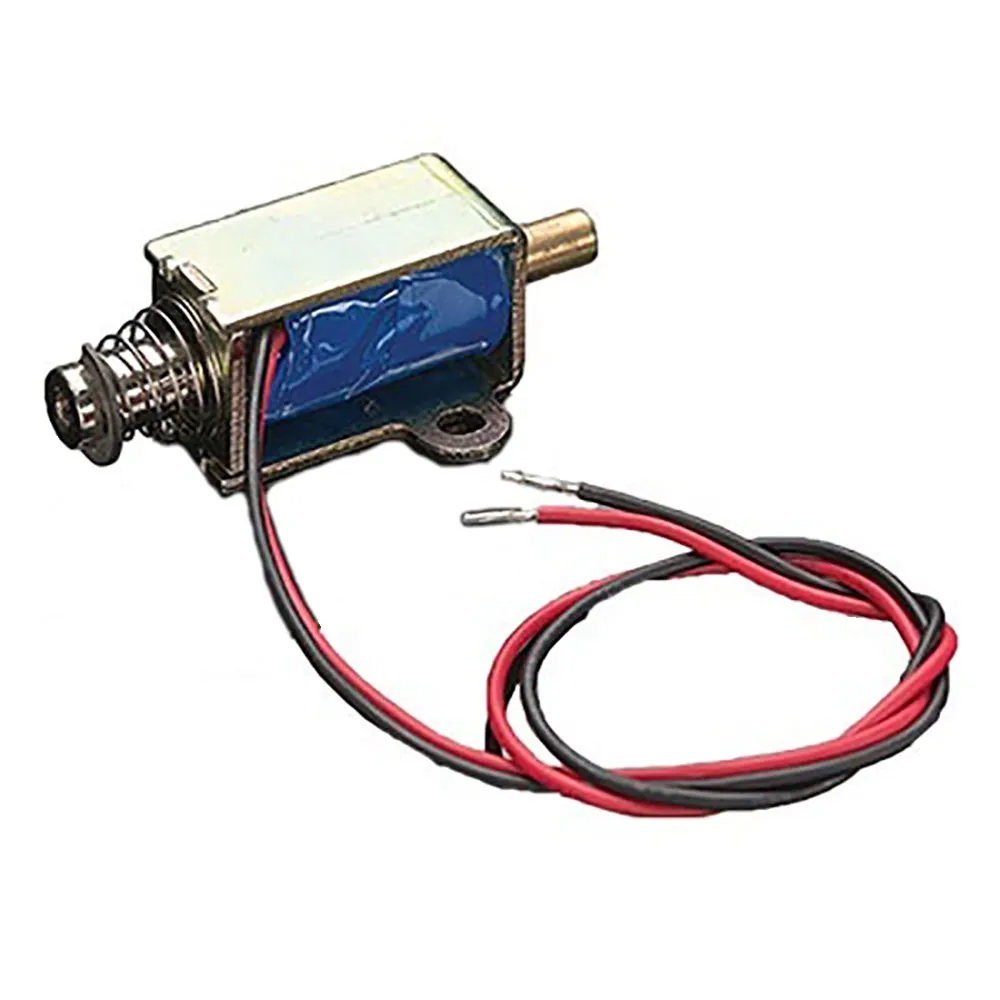 This solenoid is fairly small with a 30mm long body and a "captive" armature with a return spring. This means when energized with up to 12VDC, the solenoid moves and when the voltage is removed, it springs back to the original position. Many lower cost solenoids are only one type, push or pull, and may not have a captive armature (it just falls out) or doesn't have a return spring. This one even has handy mounting tabs making it a great multi-purpose solenoid.