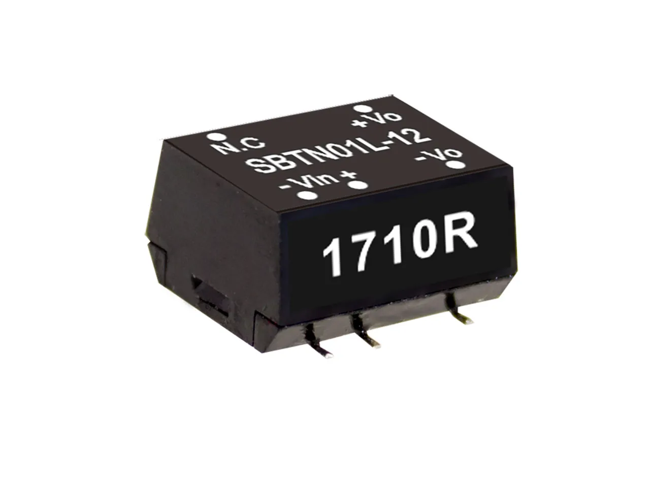 SBTN01-N series is a 1W isolated and unregulated module type DC-DC converter with SMD package. It features international standard pins, a high efficiency up to 83%, wide working temperature range -40 to +100C, 2KV I/P-O/P isolation voltage, compliance to BS EN/EN55032. The models account for different input voltage 5V/12V/24V±10%, and various output voltage, 5V/12V/15V for single output which are suitable for all kinds of systems such as industrial control, telecommunication field, distributed power architecture, and more.