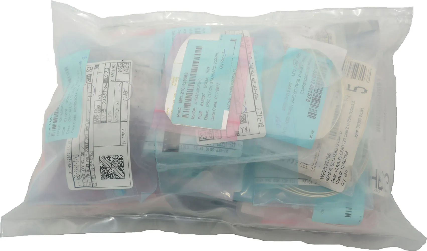 Description:SMT GRAB BAG: Diodes, Transistors, Crystals, Capacitors, Inductors, LEDs, Resistors, Ferrite Beads