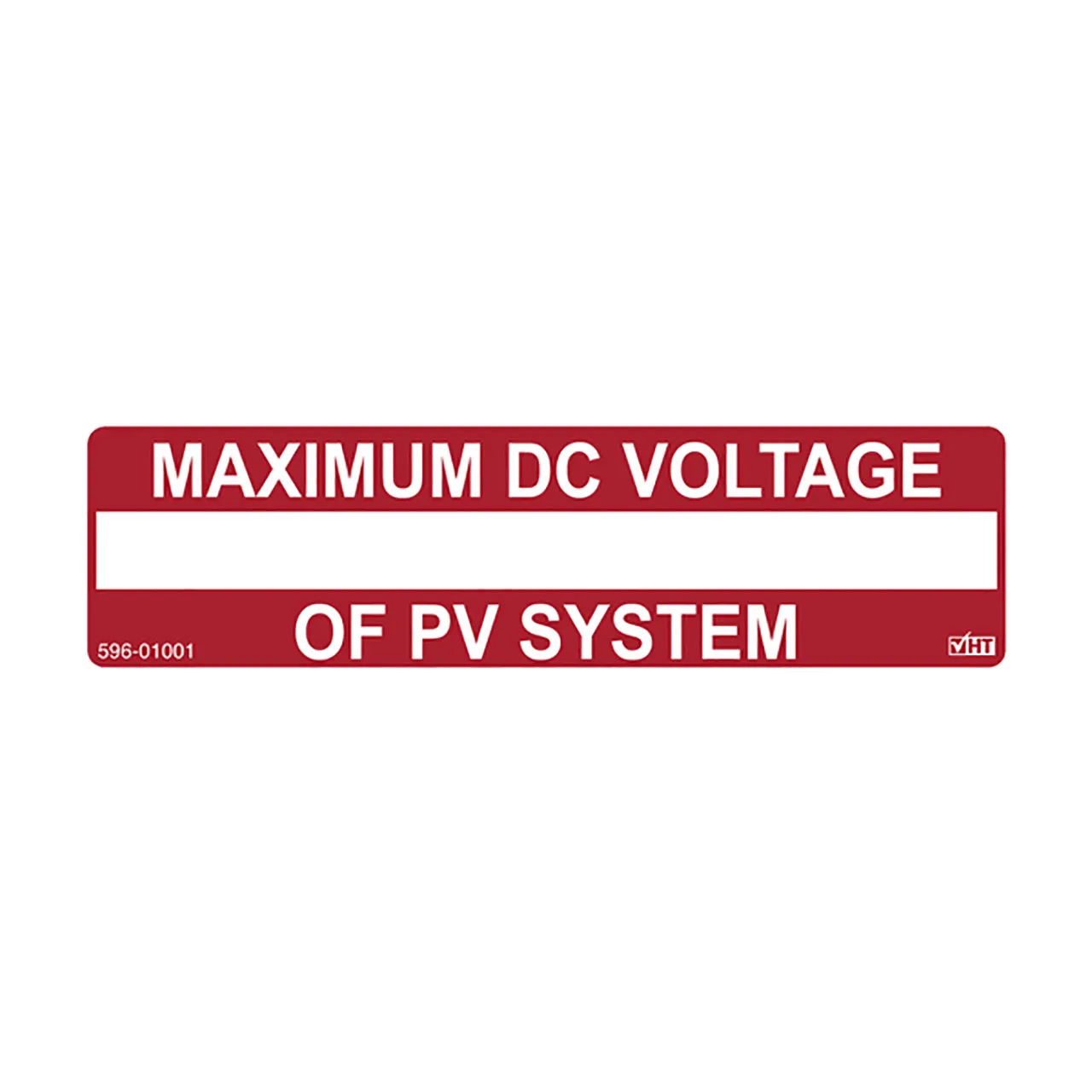 Solar Label, Printable, MAXIMUM DC VOLTAGE LABEL, 3.75" X 1.0", PET, Red, 10 per Package