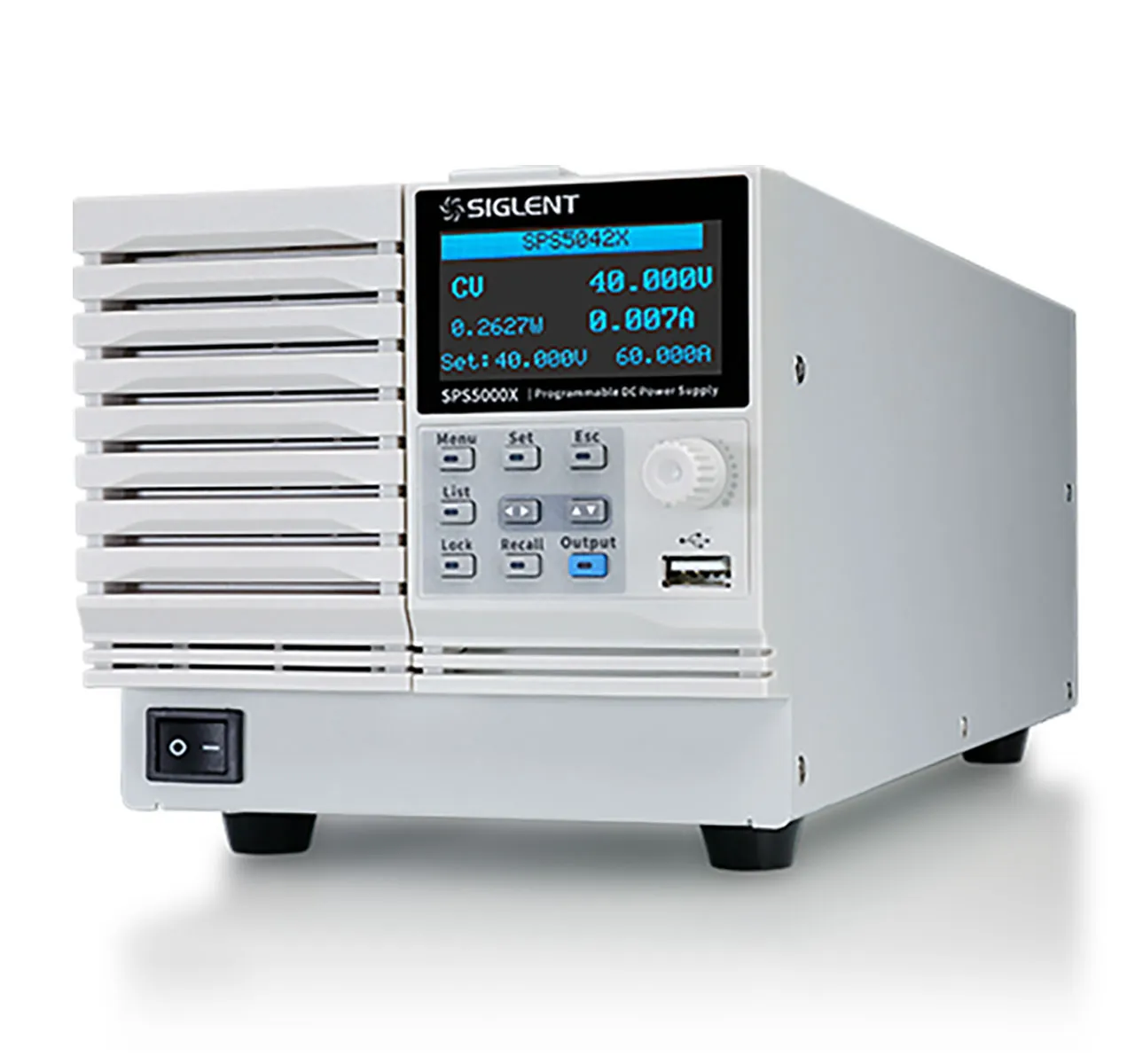 The SPS5000X-Series is a programmable Switching DC Power supply series that provides a wide range of output power using single-channel output configurations coupled with constant power capability. The series of power supplies includes sixteen models with voltages to 160 VDC and power to 1080 W. The SPS5000X supplies can be connected in series (2 units) or in parallel (3 units) to meet the requirements of 0~320V and 0~270A, with a maximum combined power of 3240W.Key Features