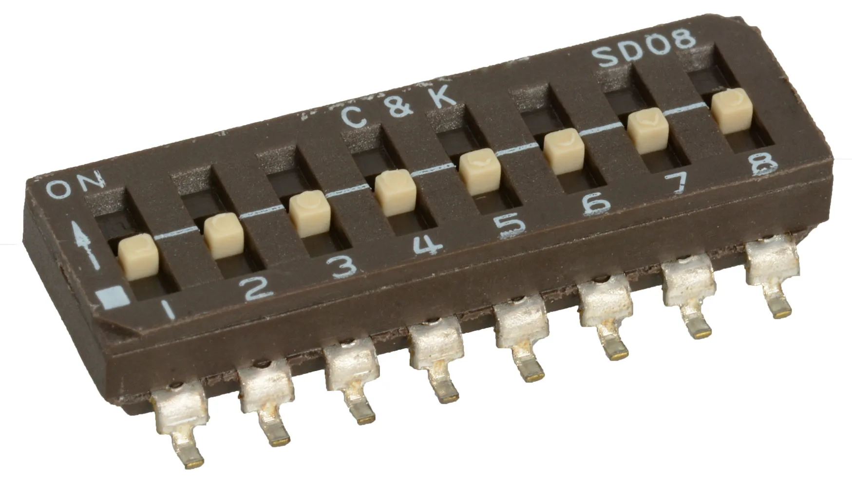 SPST Raised Slide 8-Position DIP Switch Low Profile Surface Mount Sealed 25VDC 100mA