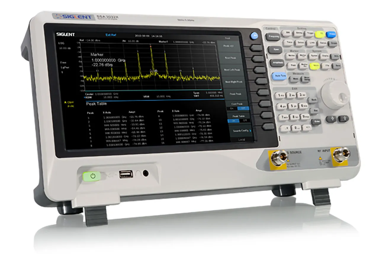 Siglent SSA3000X Spectrum Analyzers offer a frequency range of 9 KHz to 3.2 GHz. With their light weight, small size, and friendly user interface, the SSA3000X present a large, bright, easy to read display, powerful and reliable automatic measurements, and plenty of impressive features.SSA3000X Spectrum Analyzers' applications include research and development, education, production, maintenance, and pre-compliance testing.