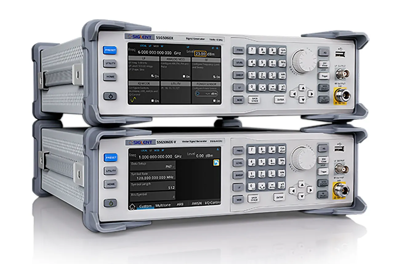 SSG5000X RF Signal Generators can generate analog, vector signals, and have a frequency range of 9 kHz to 6 GHz. They feature the industry-leading performance in phase noise, spectral purity, bandwidth, EVM, output power. The internal IQ modulation generator and waveform playback function make it easy to create even the most complex signal types. SSG5000X generators also cover the most important RF band for digital wireless communications and include standard waveform files. The SIGLENT SSG5000X Signal Generators are powerful and cost effective sources that are ideal for R&D, education, and manufacturing.Key Features