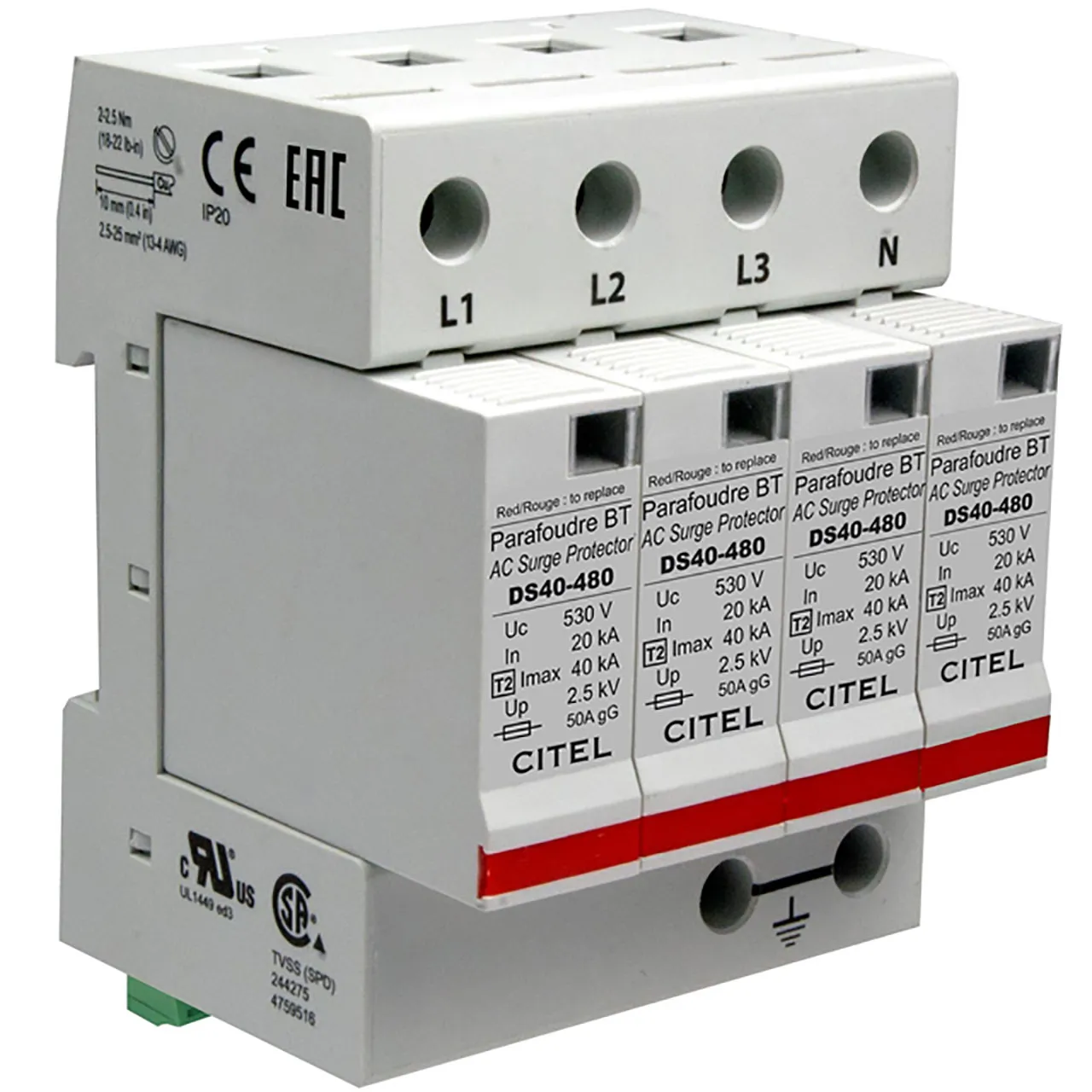 SURGE SUPRSR,AC DIN,550Vac,40kA,277/480V 3-PHASE+N