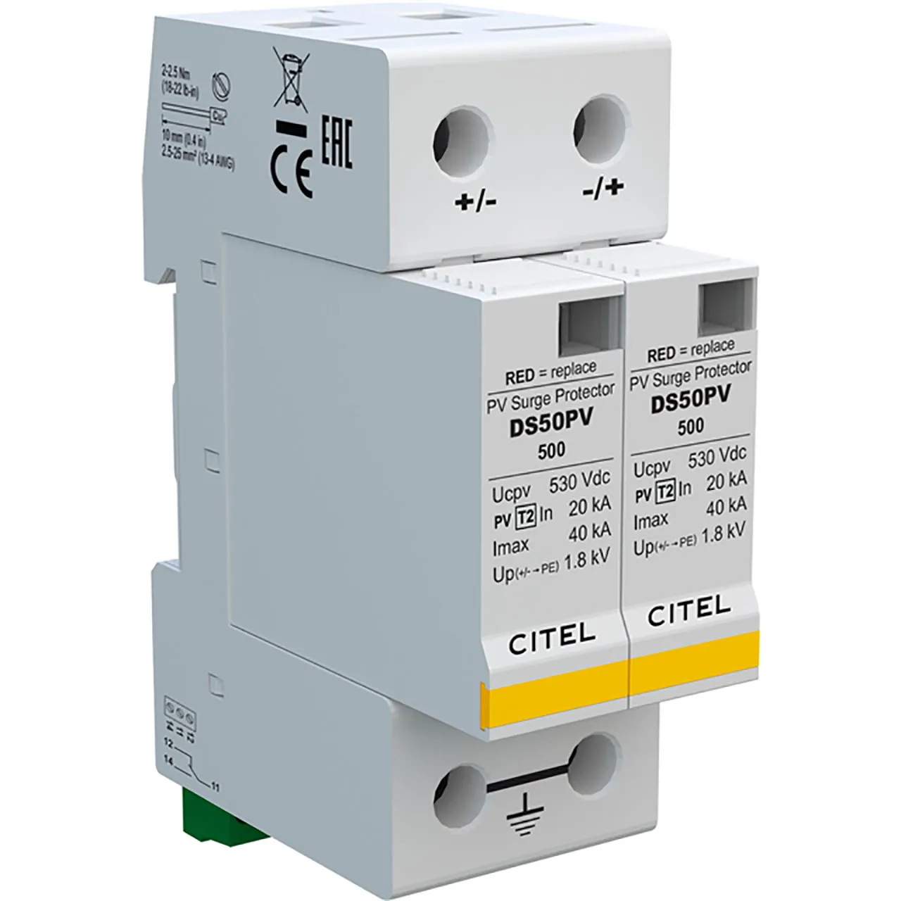 SURGE SUPRSR,DIN RAIL,PV SYSTEM,530Vdc,40kA,PV-500V DC NETWO
