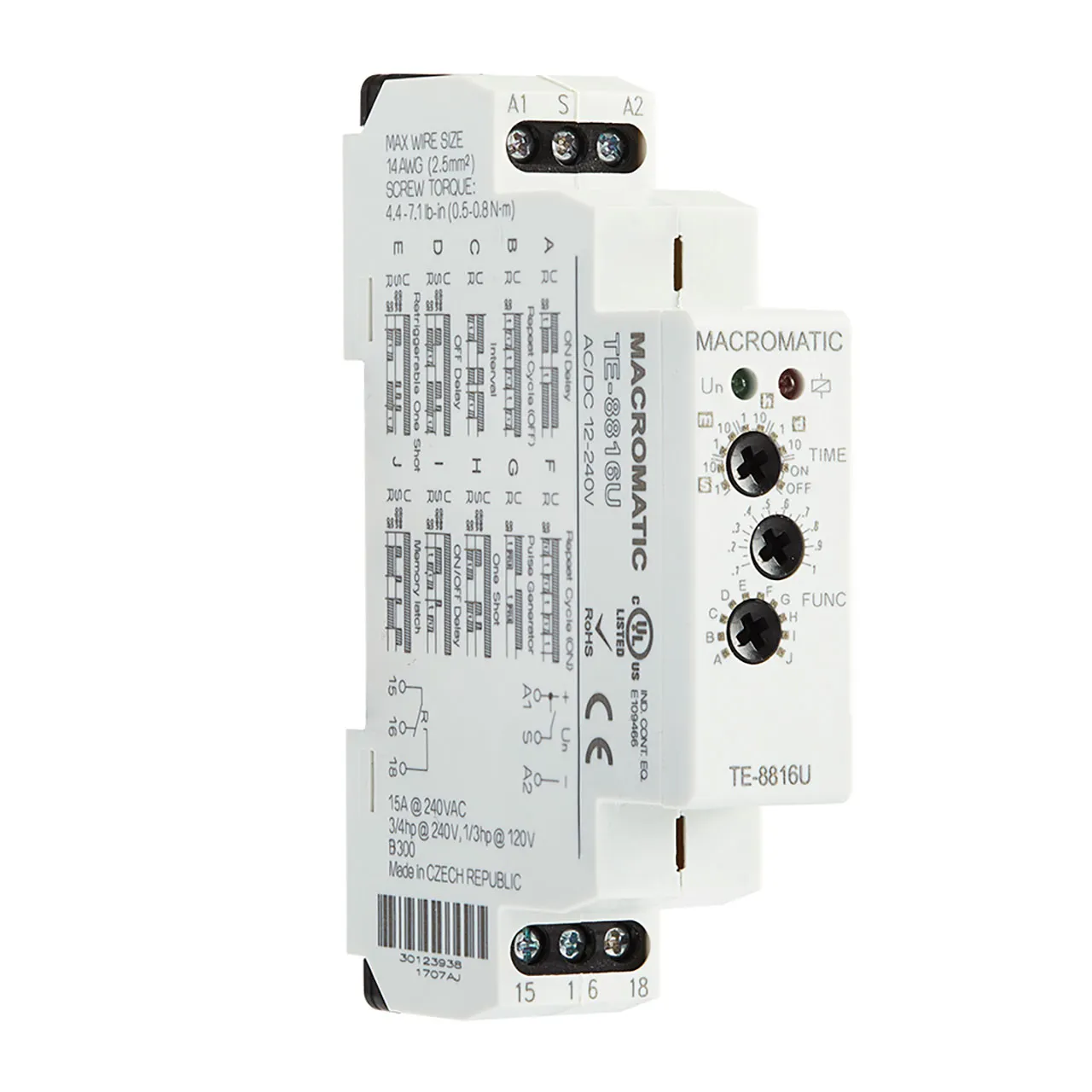 Time Delay Multi-Function DIN mount 0.1sec-10 Days 12-240V AC/DC 15A DPDT