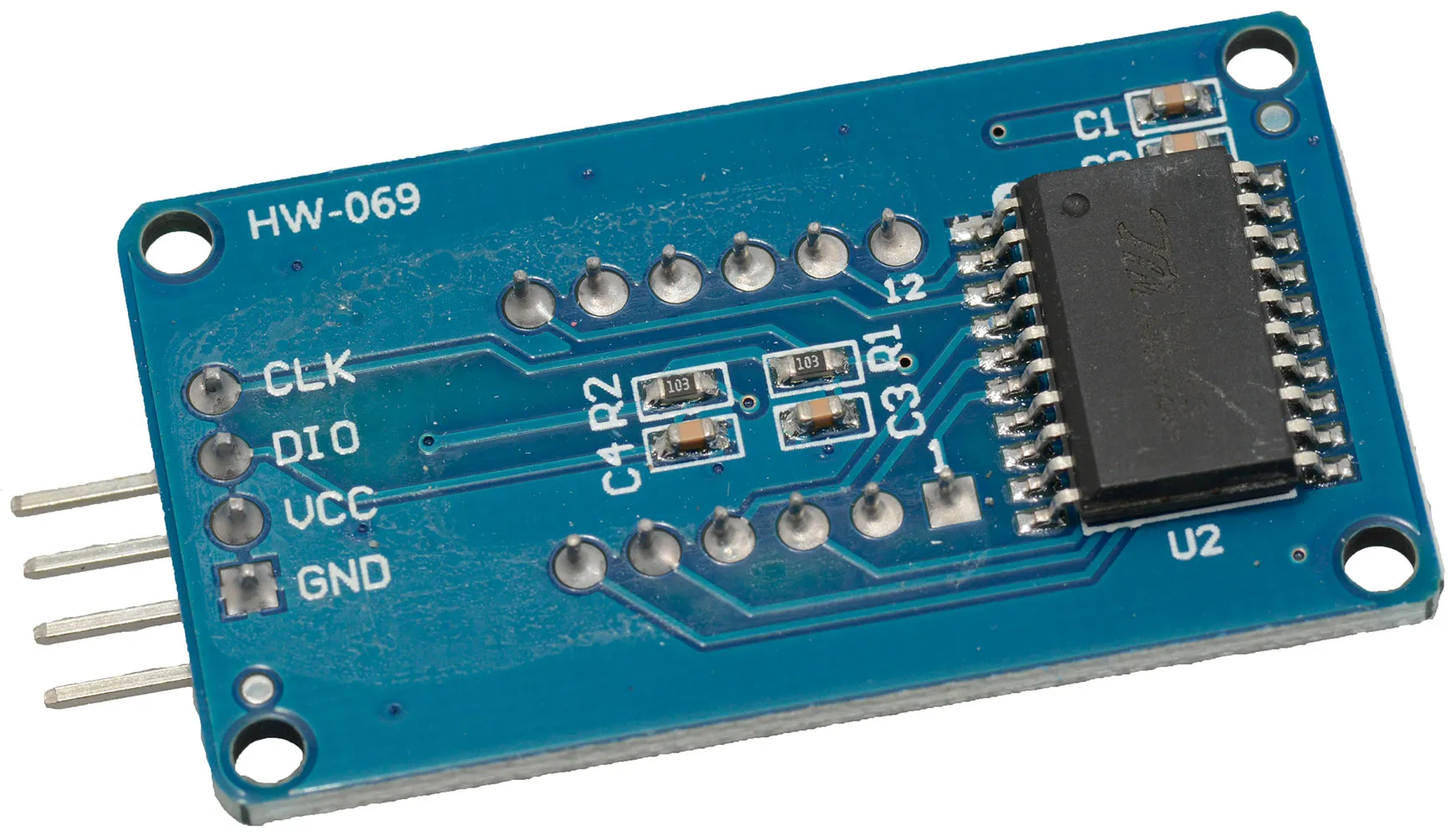 The module is a 12-pin display module with a 4-point common digital tube (0.36 inch) with a clock point. The driver chip is TM1637. It only needs two signal lines to enable the MCU to control the 4-bit 7-segment digital tube.Features