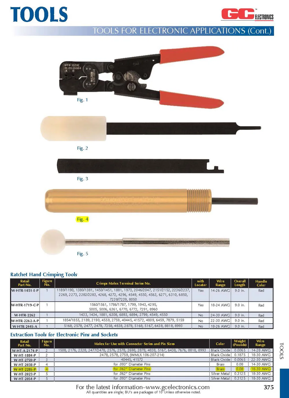Tool Extraction .062 Inch Contacts 18-30 AWG for .062" Diameter Pins