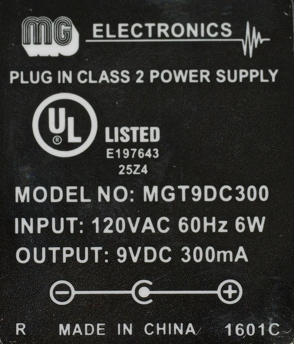 Unregulated Wall Transformer 9 Volt 300 mA 3 Watt 2.1mm Plug