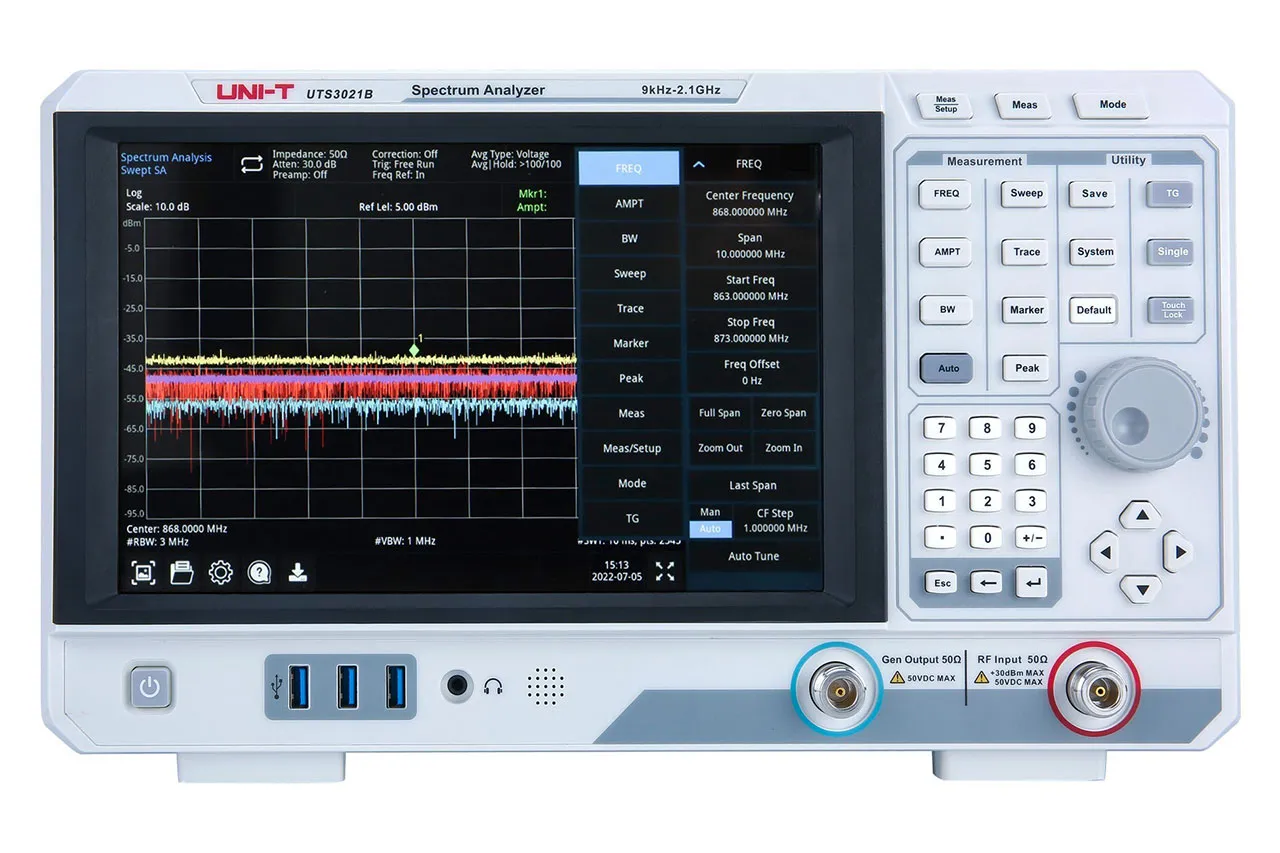 The UNI-Trend UTS3015T+ Performance-Series Spectrum Analyzer includes a tracking generator and is an affordable 1.5GHz signal analyzer for EMI pre-compliance testing and a variety of other applications. Offers VSWR reflection measurement capability.