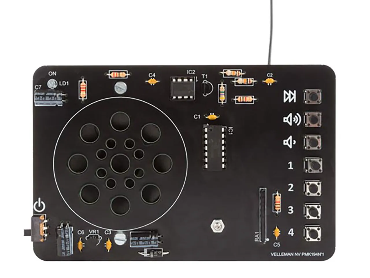 The Velleman WSAH194 Digitally Controlled FM Radio Soldering Kit is an engaging and educational kit that allows hobbyists and professionals alike to build their own FM radio. This electronic soldering kit features a new and enhanced high-quality (HQ) FM receiver module, providing an enriching experience for those interested in radio technology and electronics. The ease of soldering the SMD FM receiver module makes it an excellent choice for beginners while still offering enough complexity to appeal to more experienced electronics enthusiasts. One of the standout features of this FM radio soldering kit is its single-button station search function, which simplifies the process of finding and tuning into FM stations. Additionally, the kit includes four station presets, complete with a confirmation beep when set up, enhancing user convenience.Practical Benefits