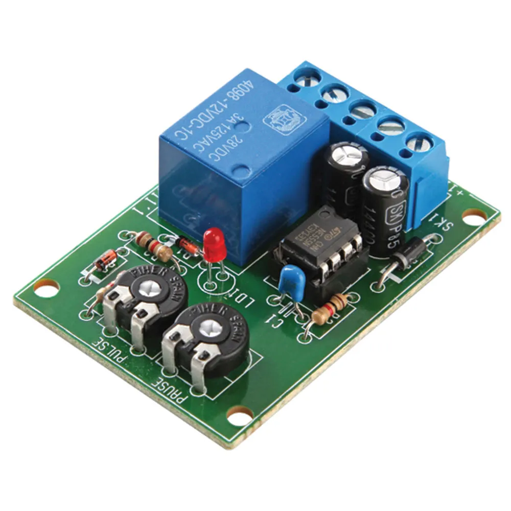 General purpose pulse/pause timer for various interval timer automations and for intermittent operation of circuits and equipment.Features