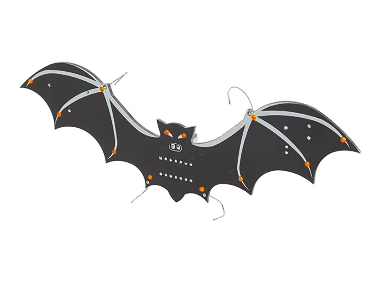 This seasonal gadget is shaped like a creepy bat and has a matte black finish with a white coating to illustrate its wings. Four holes were added to the PCB to give the bat claws, which you can also use to hang the gadget.