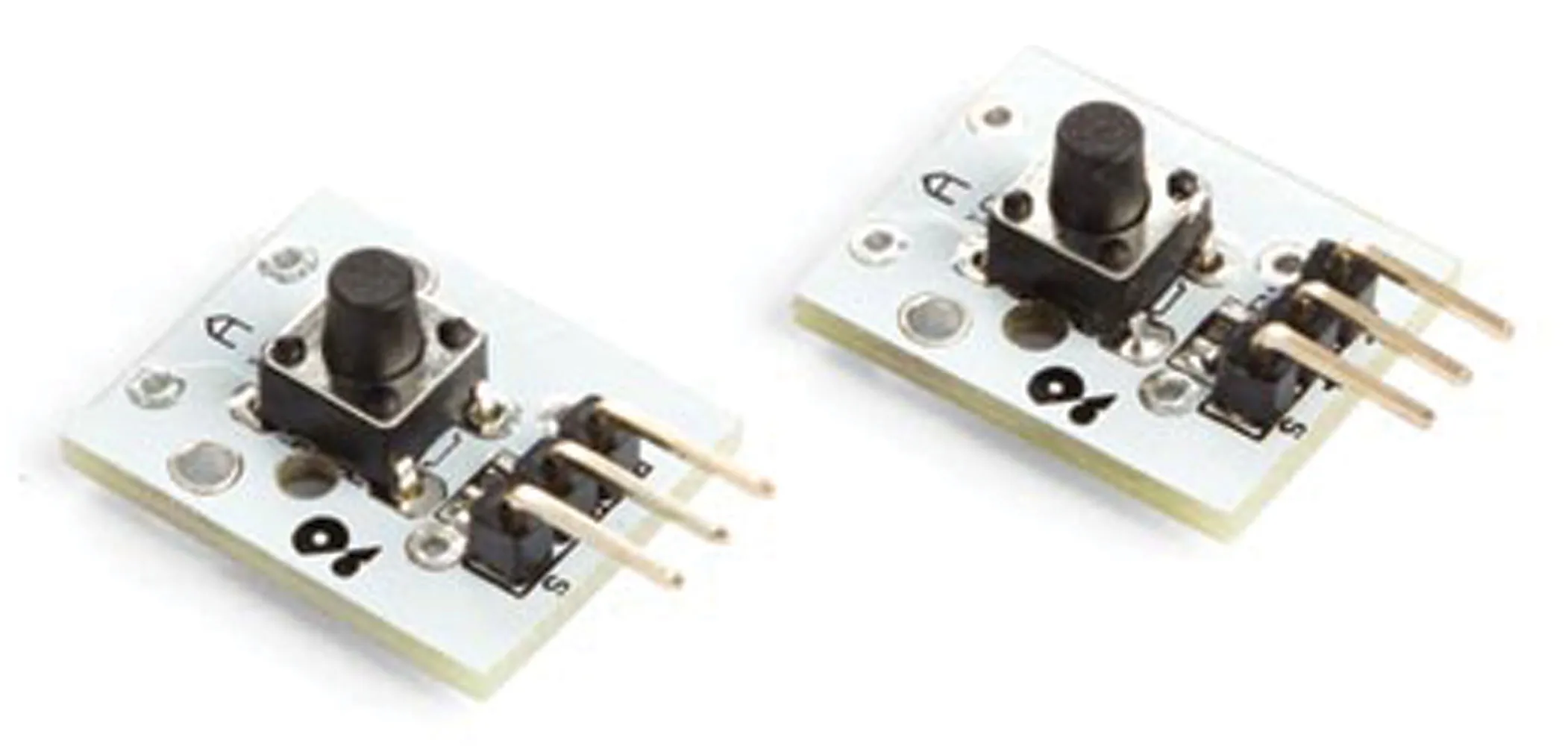 This module contains a mini tactile push button switch and a 10K pull-up resistor. Use these in your Arduino projects and detect when one of the buttons is pressed.Specifications
