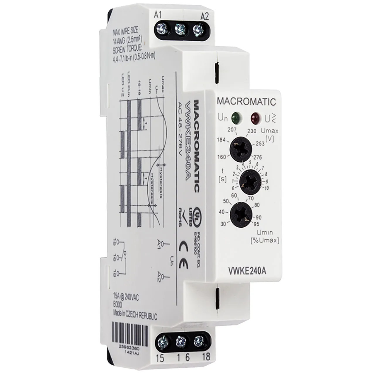 Voltage Band Relay for 240VAC,15A,DPDT,0.1-10 Sec,DIN