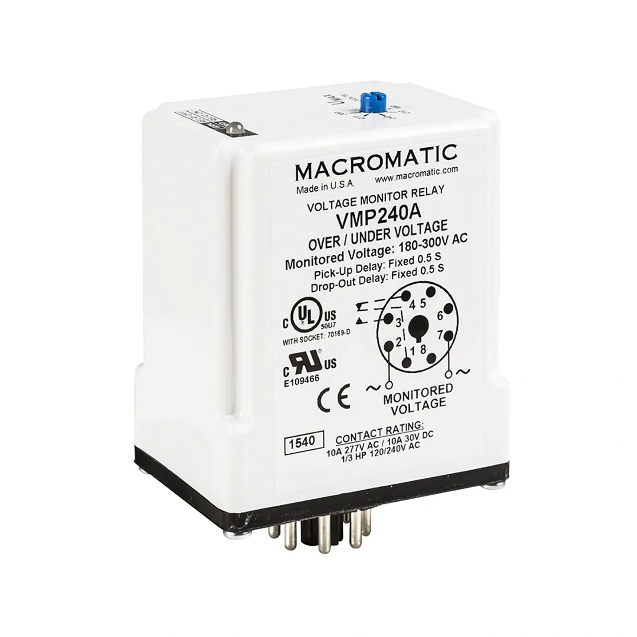 Voltage Monitor Relay for 480VAC,10 Amp Relay,DPDT,Plug In