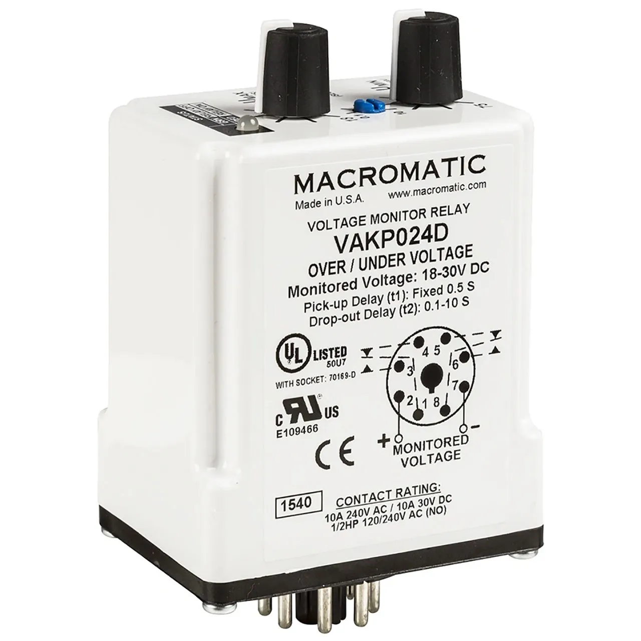 Voltage Monitor Relay,110VDC,10A,DPDT,0.1-10 Sec,Plug In