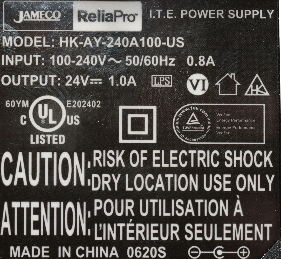 Wall Adapter 24 Volt DC 1 Amp 24-Watt 2.5mm Plug