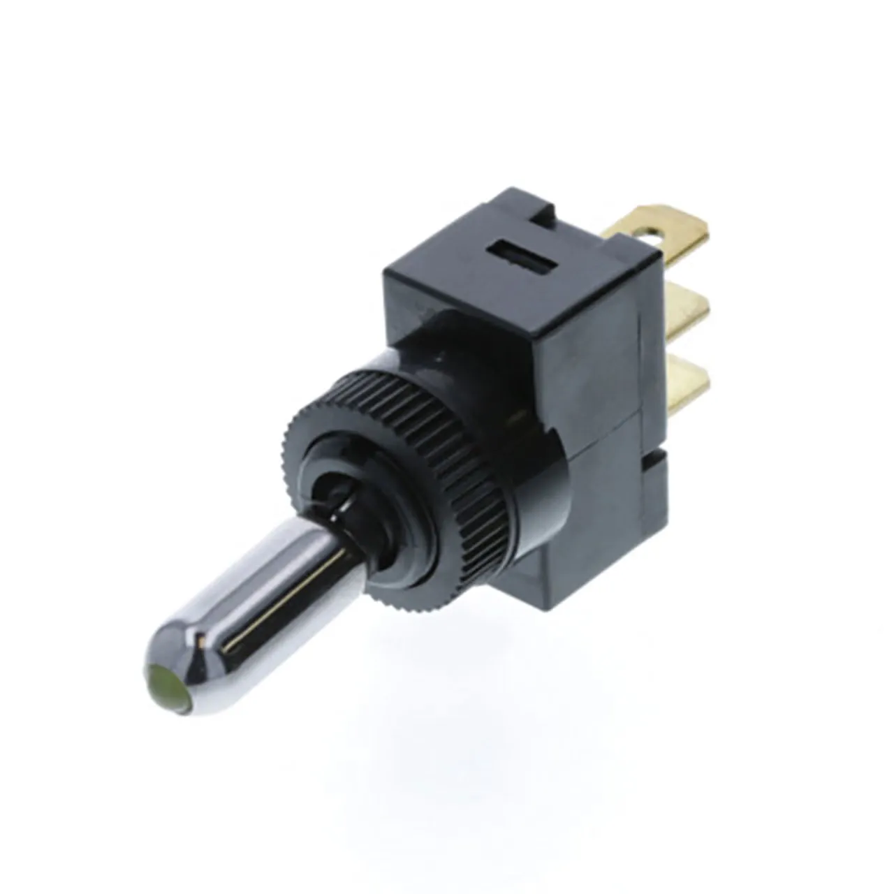 Wedge Toggle - 3P SPST OFF-ON Round Chrome Lever with Amber LED Tip