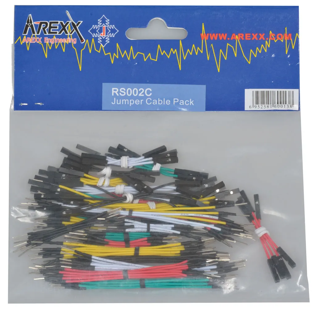 This pack contains 100 male to male and 40 female to female cables in 5 colors. The male to male cables come in 40mm, 80mm and 120mm lengths. The female to female cables come in 40mm and 80mm length.Product Identification