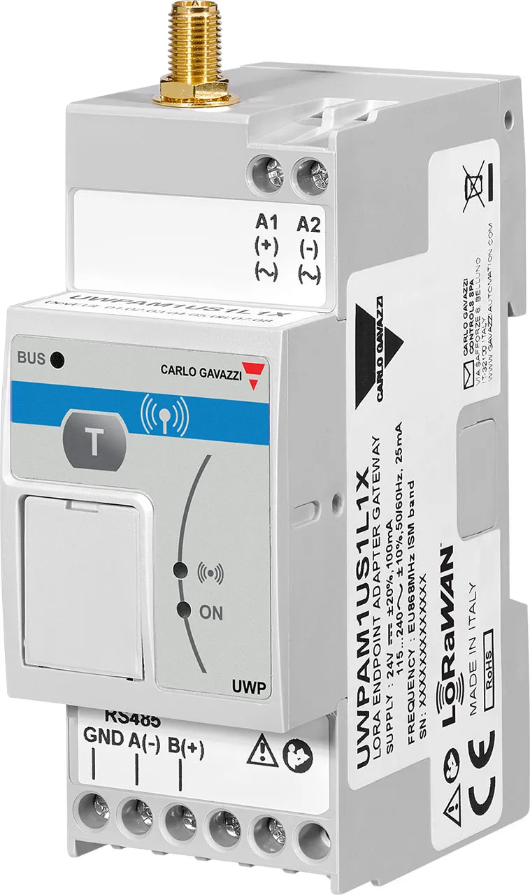 Wireless enpoint gateway providing LoRa/LoRaWAN communication; connected to meters via RS485; high-performance antenna.